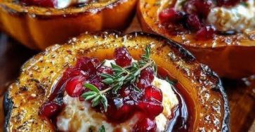 Honey-Glazed Acorn Squash with Creamy Goat Cheese and Cranberry Drizzle A Cozy, Flavorful Delight for Chilly Evenings or Holiday Gatherings…