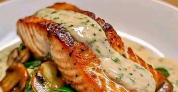 Garlic Butter Salmon with Spinach & Mushrooms in Creamy Sauce