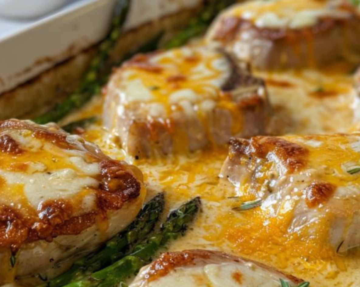 Spring Vegetable & Cheesy Pork Chop Casserole